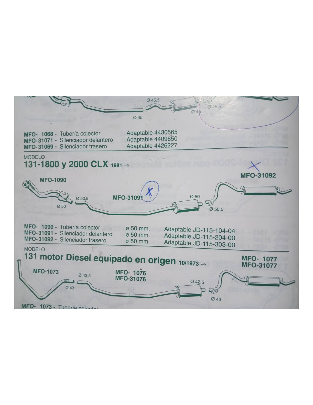 SILENCIOSO TRASERO ESCAPE SEAT 131 1800 Y 2000 CLX DE 50 mm. FONOS MFO-31092 1092. REF ORIGEN JD-115-303-00