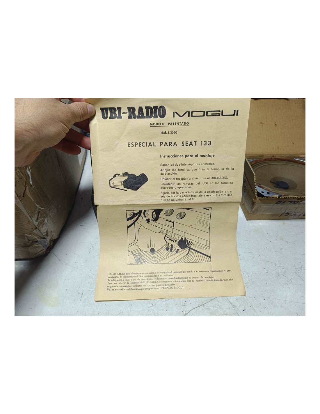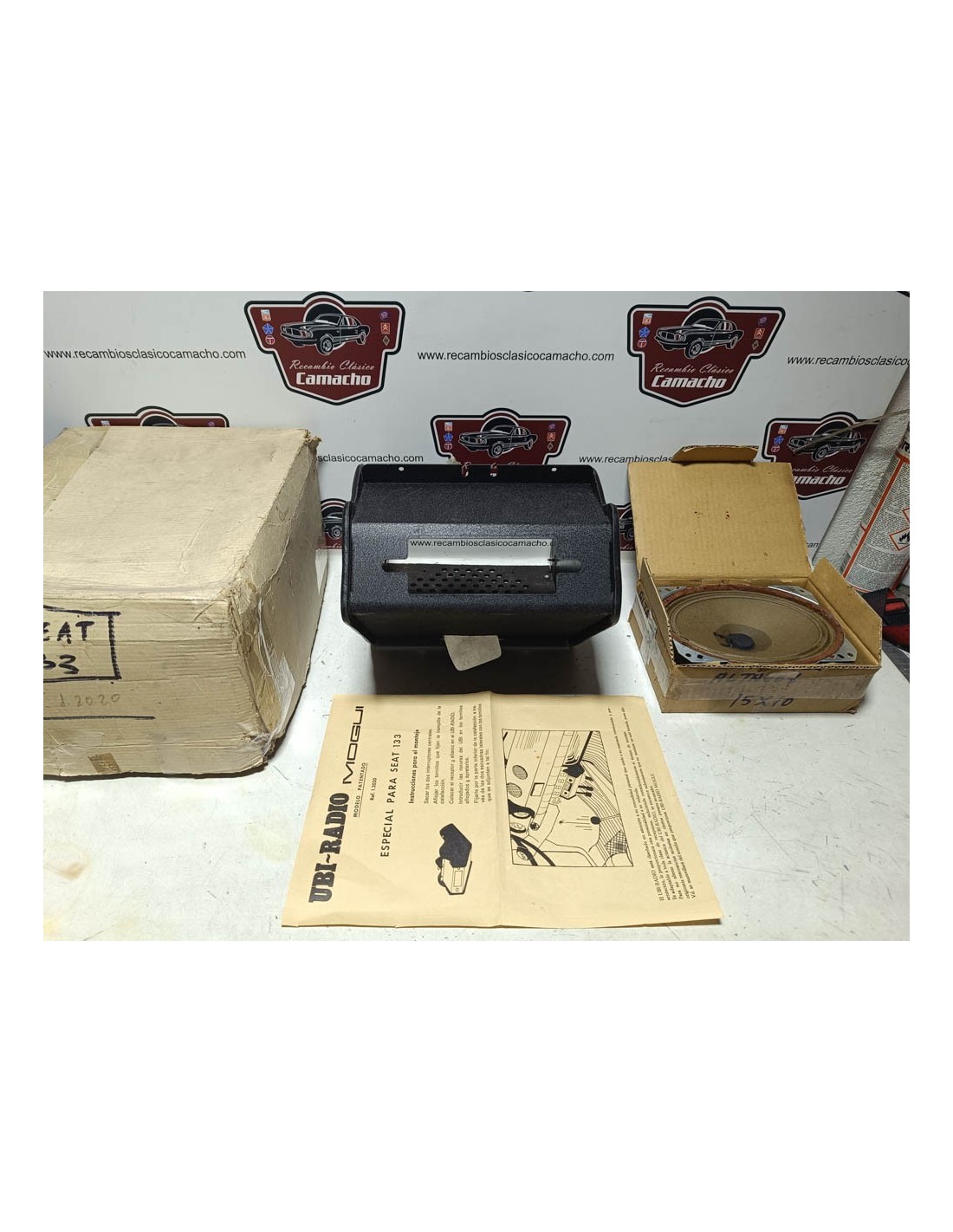 Mueble de radio con altavoz Seat 133 . Recambio nuevo de antiguo stock.