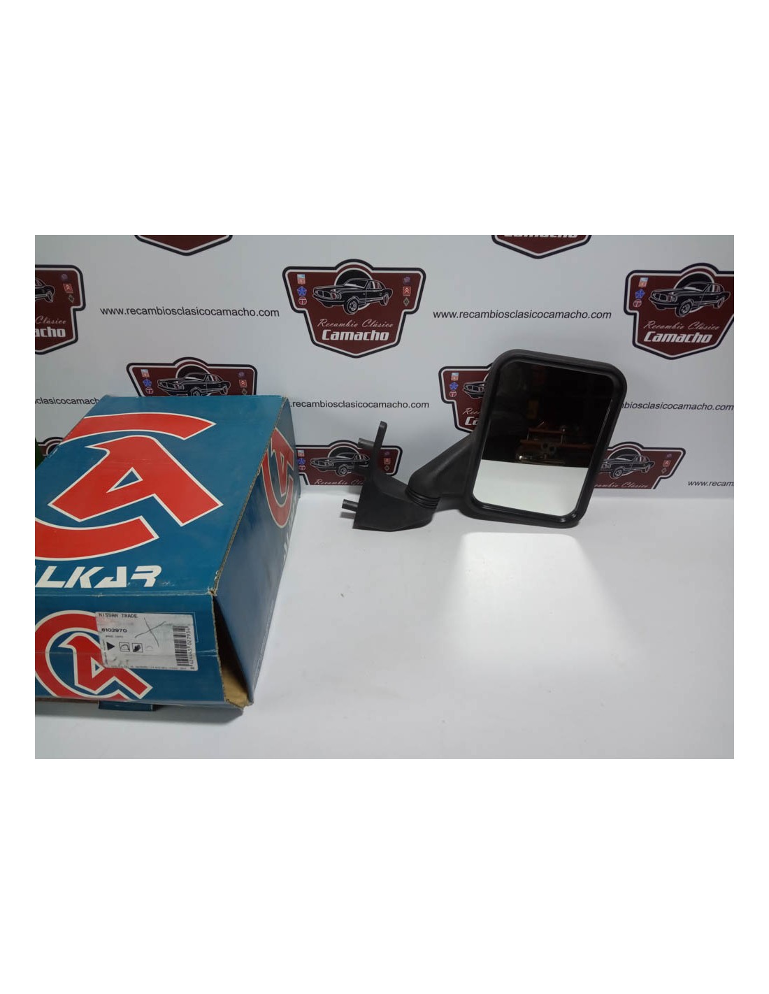 ESPEJO RETROVISOR EXTERIOR DERECHO NISSAN TRADE A PARTIR DEL 93.BRAZO CORTO. ALKAR 6102970. BASE DE SUJECION TRIANGULAR CURVADA.