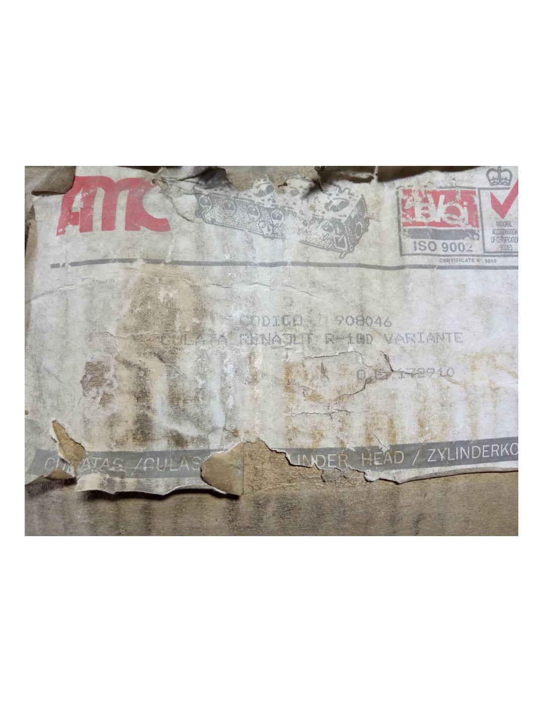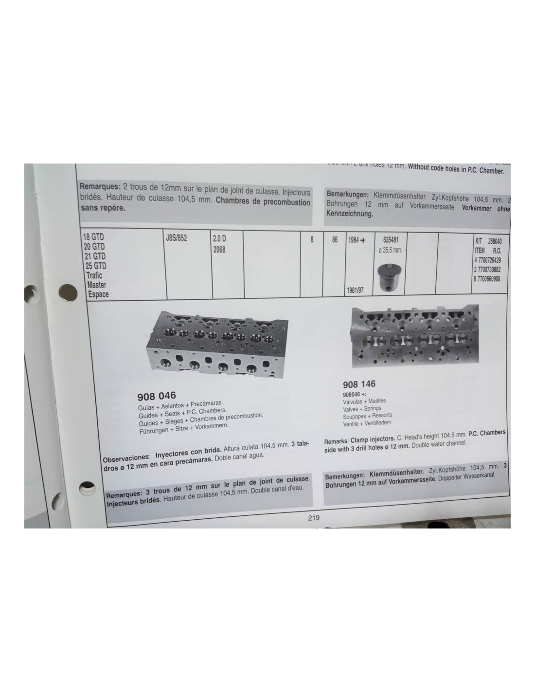 CULATA DESNUDA RENAULT 18 , 20 , 21 , 25 ,  GTD , TRAFIC , ESPACE , MASTER CON MOTOR 2.0 D DIESEL DE 2068 cc . AMC 908046 .