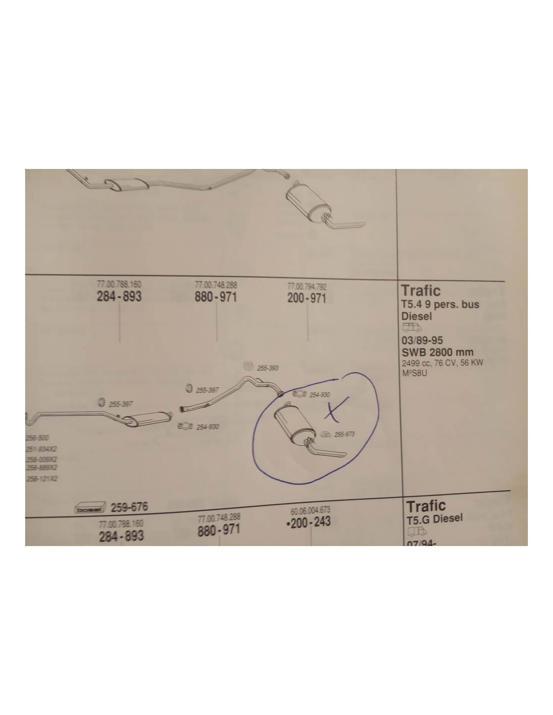 SILENCIOSO TRASERO DE ESCAPE RENAULT TRAFIC MOTOR 2.1 Y 2.5 DIESEL DEL 89 AL 95 . BOSAL 200-971 . REF ORIGEN 7700794792 . Nº 463 .