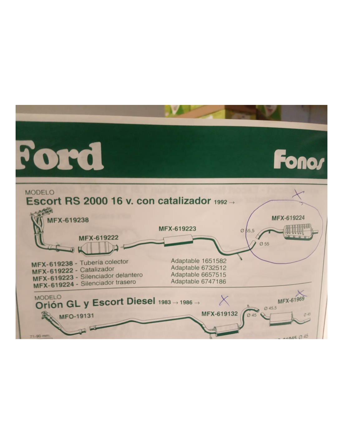 SILENCIOSO TRASERO DE ESCAPE FORD ESCORT VI RS 2000 16V CON CATALIZADOR Y XR3i . CISAM 53978 . EQUIVALENTE A FONOS 619224 . REF ORIGEN 6747186 . Nº 470 .