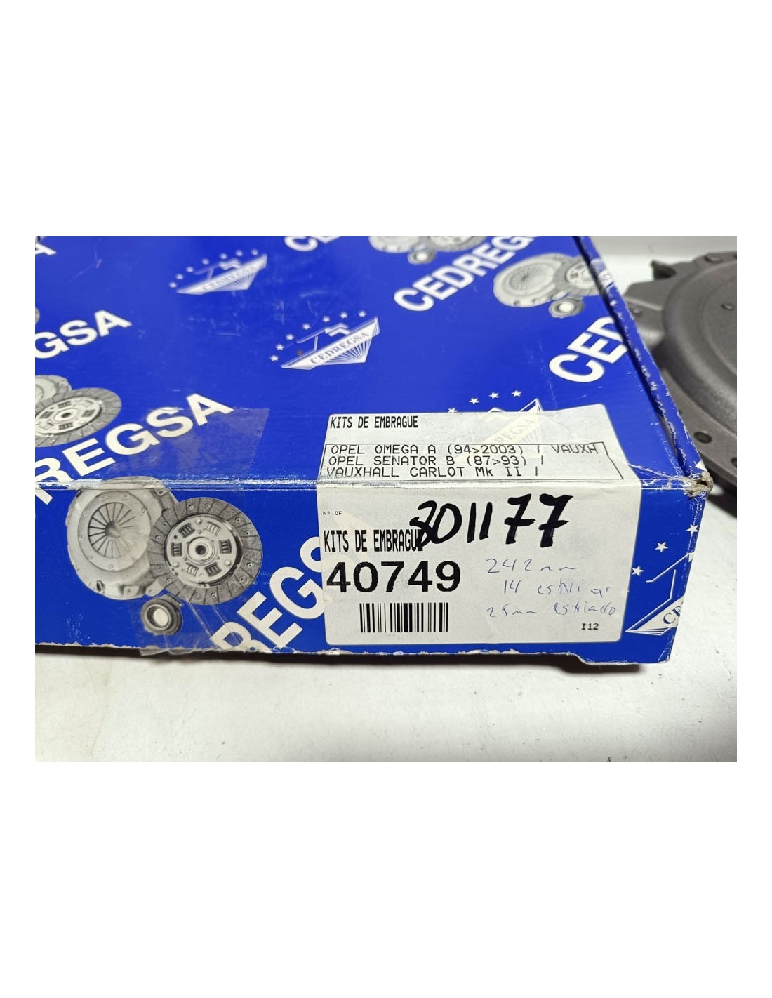 Kit de embrague completo Opel Senator B motor 2.6 y 3.0 y Opel Omega A 2.6 y 3.0 . Diámetro 242mm , 14 estrías y 25mm tamaño estriado . Equivalente a Valeo 801177 . """comprobar las medidas y numero de estrías antes de realizar el pedido""".