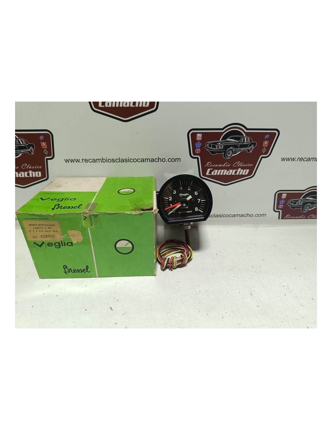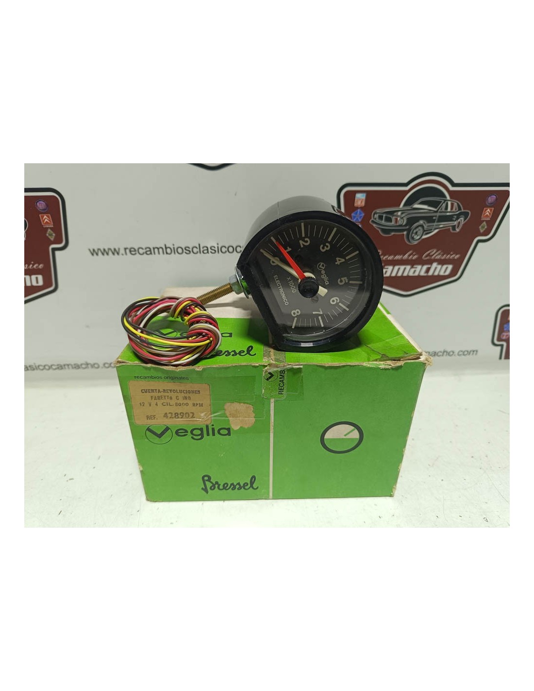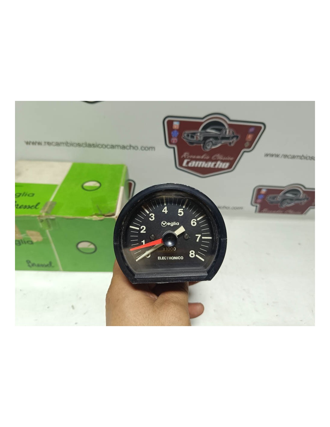 Reloj marcador cuentarrevoluciones electrónico Veglia Bressel 12 voltios para vehículo clásico . Veglia Bressel 428902 .