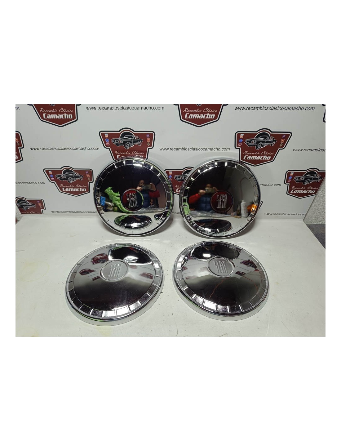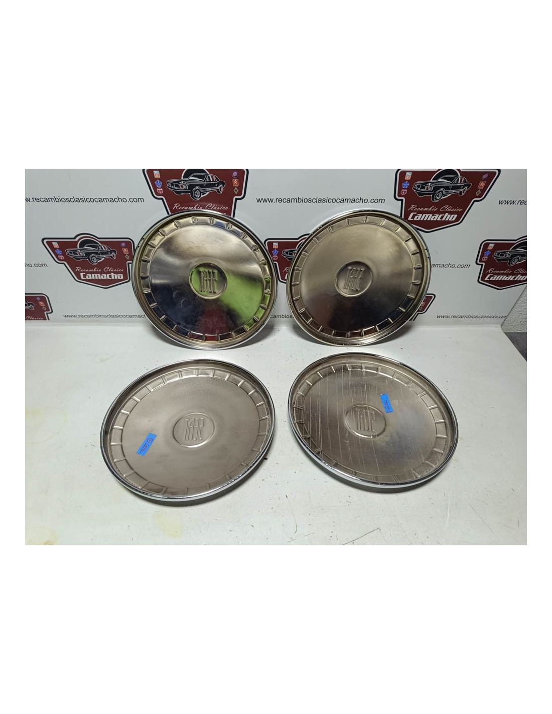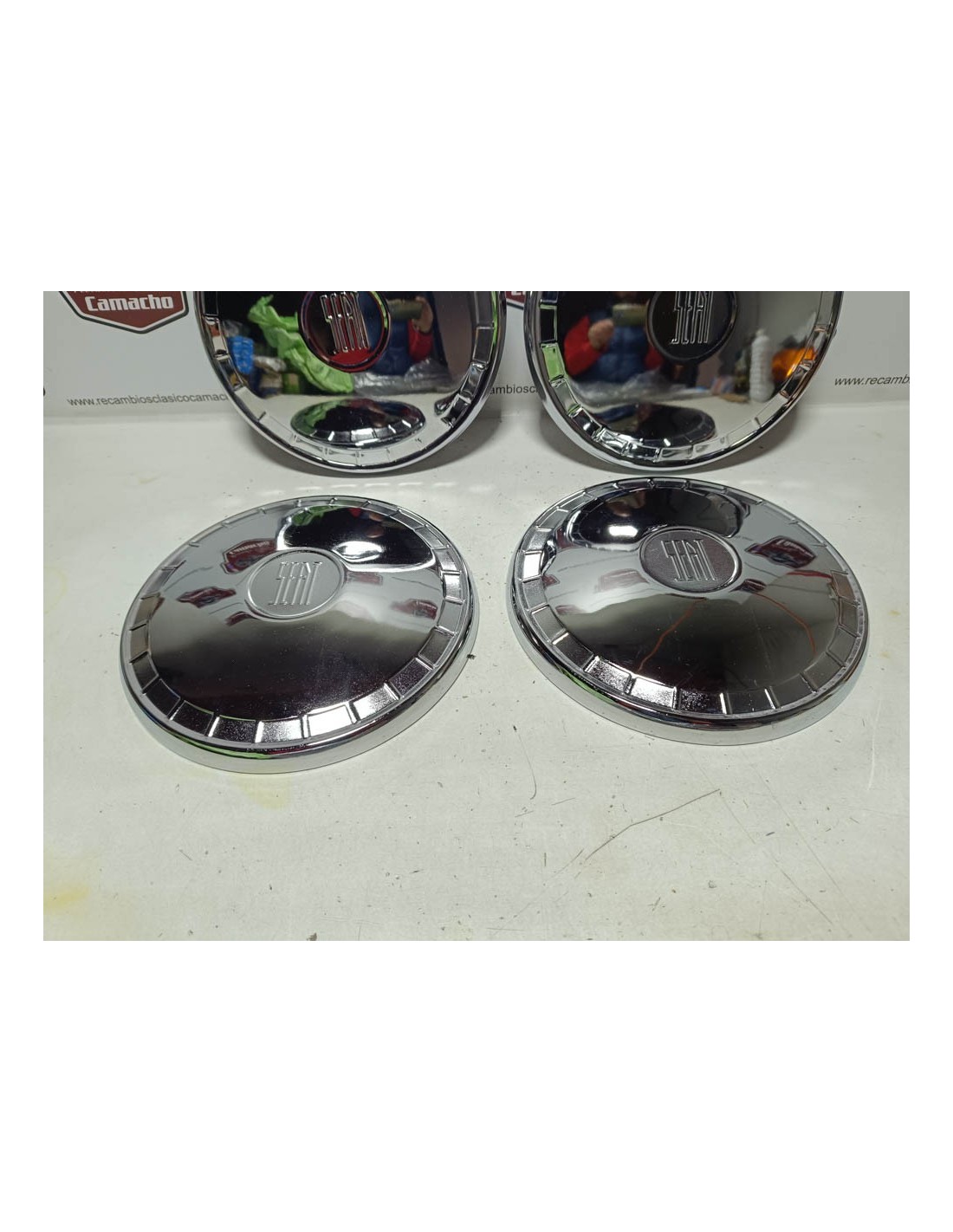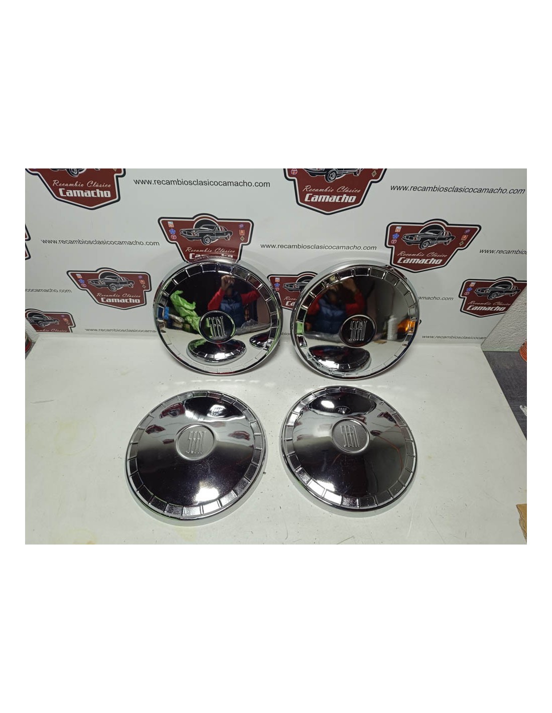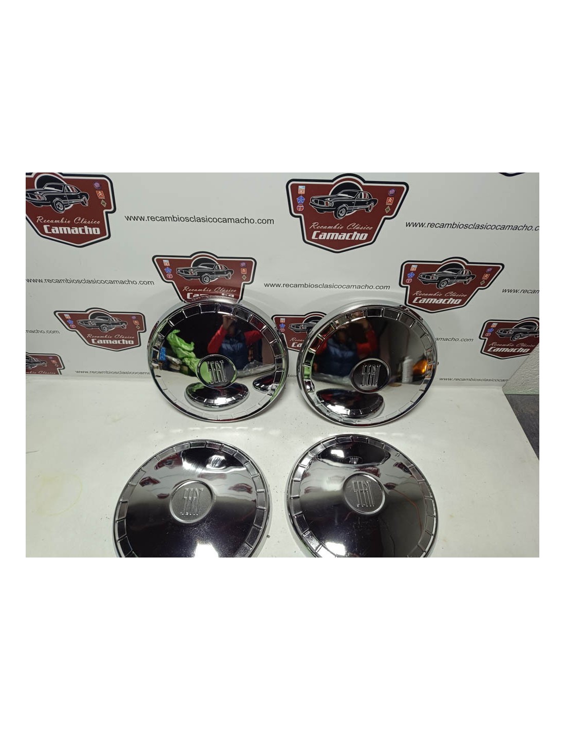 Juego de 4 tapacubos Seat 124 primera serie. Recambio nuevo de antiguo stock .
