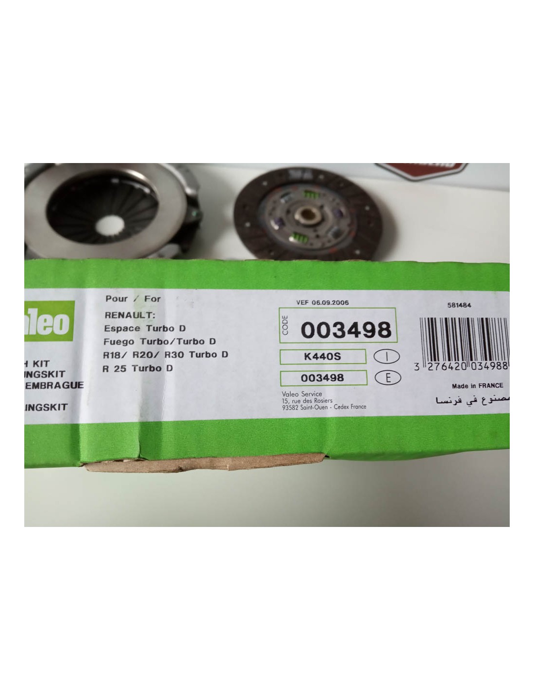 KIT DE EMBRAGUE COMPLETO RENAULT 18,FUEGO,TRAFIC,20, RENAULT 25 ,30 ,ETC MOTOR 2.1 TURBO DIESEL. VALEO 003498 .